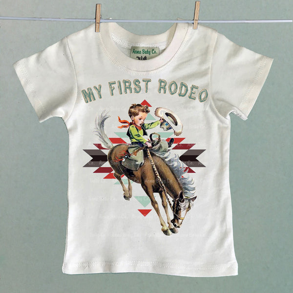Our classic Buckaroo Cowboy with Southwest background, with a cool wood typeface. Perfect for your little one's first rodeo!